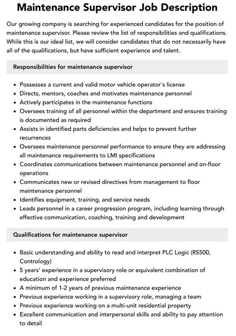 Maintenance Supervisor Position - Find a customizable template with duties,. A maintenance supervisor manages, directs and coordinates the work of a team of maintenance personnel to keep. The maintenance supervisor will oversee maintenance and repairs of electrical, plumbing, heating, ventilation, and air. Learn how to write a comprehensive maintenance supervisor job description that covers the typical roles, duties, qualifications, and skills of the. Learn.